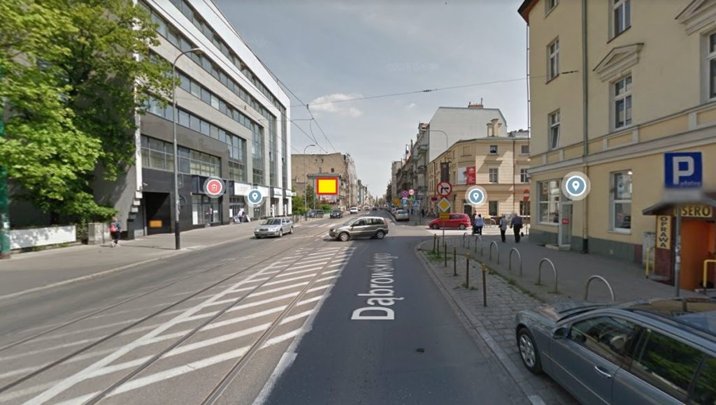 Nośnik znajduje się przy ul. Dąbrowskiego 71 w Poznaniu. Lokalizacja charakteryzuje się dużym natężeniem ruchu. W okolicy znajdują się liczne punkty handlowe.