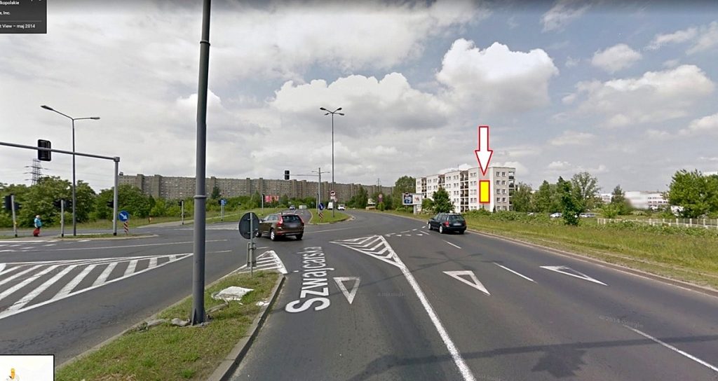 Nośnik reklamowy charakteryzujący się bardzo długim najazdem. Doskonale widoczny ze skrzyżowania ulic Szwajcarskiej/Szwedzkiej. Skrzyżowanie to charakteryzuje się bardzo dużym natężeniem ruchu kołowego. Jest to jeden z głównych traktów komunikacyjnych łączących południowo-wschodnia cześć Poznania z centrum miasta. W pobliżu znajdują się m.in., Szpital Miejski, Browar Kompani piwowarskiej i Centrum Handlowe M1 z którego jest jedynym wyjazdem na północne rejony Poznania.